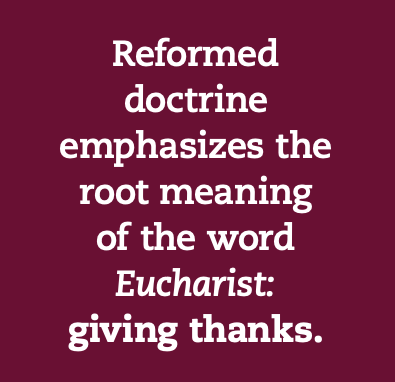 Even more important than these questions about our presence as celebrants and participants at the Lord’s Supper is the question of Christ’s presence in it. As Small and I have both said, Reformed Christians are not convinced that the material of the sacrament is mystically transformed into Christ’s physical body or that he is fully embodied in the human beings who gather to remember him. Yet we affirm his real presence. Reformed doctrine emphasizes the root meaning of the word Eucharist: giving thanks. We believe that Jesus Christ is known surely enough in the breaking of the bread that we are impelled, in Christopher Morse’s graceful phrase, to “thank God for loving all the world.”