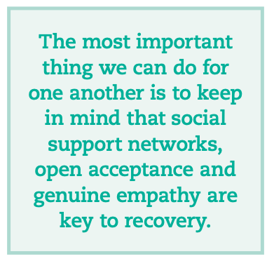 First and foremost, let someone who is dealing with trauma know you believe what they are experiencing. Right now, so many leaders and authority figures (usually because of their own discomforts, hurt and or ignorance) recommend that others just “get over it” or “move on,” which is destructive and direly unhelpful. The most important thing we can do for one another is to keep in mind that social support networks, open acceptance and genuine empathy are key to recovery.