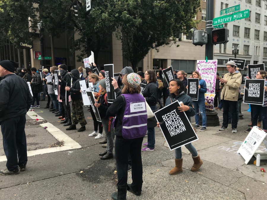 “We had been at a couple of public protests and we noticed how the Portland police department was especially brutal to people of color, hitting people with batons, intimidating, pushing,” said the Rev. Tara Wilkins, who serves as the communications person for the group. “We wanted to model ourselves after the ACLU observers and to say, ‘We’re bringing the moral voice to the street.”