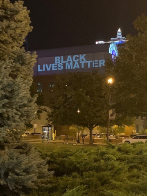 Jester started doing projections for musicians and artists several years ago. As the uprising started following the deaths of Floyd and Taylor, he said, “I wanted to use my skills and resources as a white ally to speak out against the injustice I was seeing in the world.”