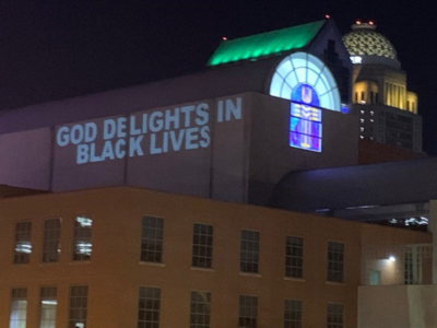 LOUISVILLE (PNS) — The international headquarters of the Presbyterian Church (U.S.A.) will be bearing witness to God’s love for Black lives and solidarity with calls for an end to systemic racism on its exterior wall later this week.