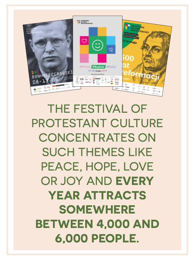 In addition to these core initiatives, EST’s Educational Center has launched and coordinated many other projects, including the Festival of Protestant Culture. This festival focuses on various aspects of Protestantism in Lower Silesia (the province in southwestern Poland where EST is located) in dialogue with other Christian and non-Christian traditions. The Reformation started as early as 1518 in Lower Silesia and changed the spiritual reality of the region. The Festival of Protestant Culture is built on this heritage. Through concerts, shows, plays, festivities, seminars and debates, it shows various aspects of the region’s ecumenical faith today. It concentrates on such themes like peace, hope, love or joy, and every year attracts somewhere between 4,000 and 6,000 people.