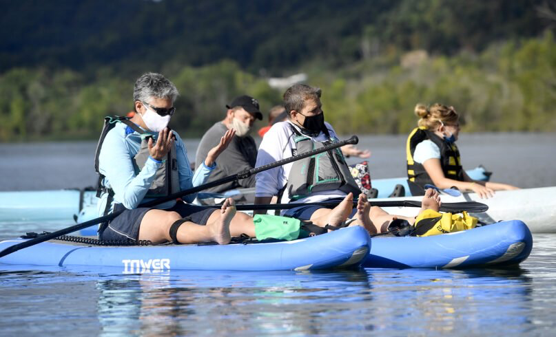 More than two dozen people joined the brightly colored flotilla for Kayak Church on Sunday (Aug. 30) as Faith, like so many other churches across the country, dips its toes into meeting together in person after months apart during the novel coronavirus pandemic.