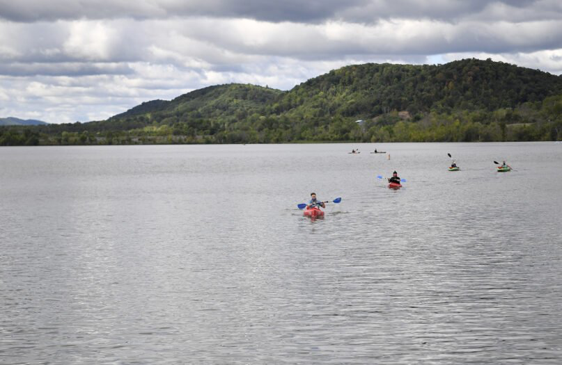 She looked out on a congregation of worshippers in kayaks, canoes and paddleboards bobbing in the water, surrounded by gentle, tree-covered mountains, a foreshadowing of fall in the air.
