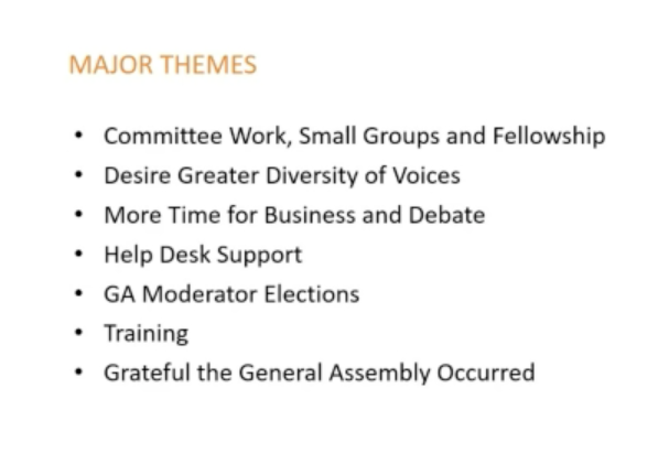 What can be learned from the online 2020 General Assembly – the PC(USA)’s first virtual General Assembly, held by necessity because of the COVID-19 pandemic – about what could be done differently and perhaps less expensively in the future?