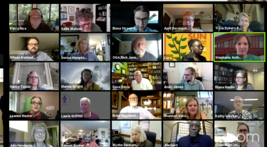 During a meeting Sept. 26 of the Moving Forward Implementation Committee, committee member James Tse asked about the possibility that the 2020 General Assembly might reconvene. Kerry Rice, deputy stated clerk, said, “We have not received anything formal, but there has been a little chatter here and there,” particularly from commissioners who “want to be in person because they missed the full commissioner experience.”