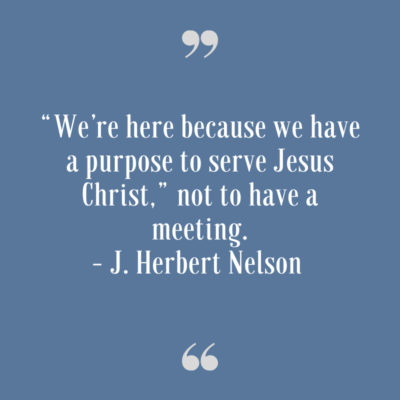 Some say, “I don’t want to change the assembly because I’m going to miss seeing my friends” or “it’s part of my vacation.” But “at the core of all this, there needs to be a purpose” for having General Assembly, Nelson said. “We’re here because we have a purpose to serve Jesus Christ,” not to have a meeting.