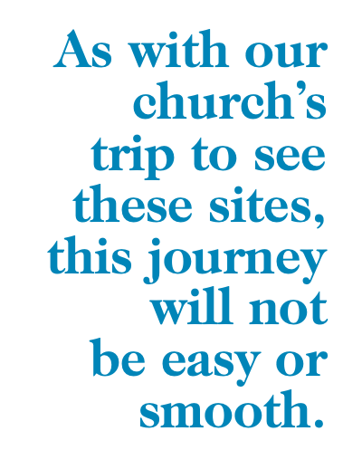 As with our church’s trip to see these sites, this journey will not be easy or smooth. It requires uncomfortable conversations. It requires passengers that are ready and willing and leaders that know the way. We will have to schedule rest stops along the way to be refreshed when our souls are weary, and our hearts are hungry and thirsty for the bread of life and the living water. We will also need to withdraw for prayer and solitude with God.