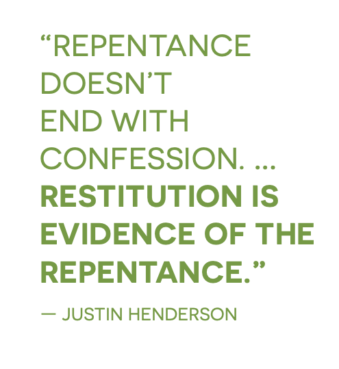 Justin Henderson, then president of the Association of Black Seminarians, told the Washington Post in April 2019 that “repentance doesn’t end with confession. … Restitution is evidence of the repentance.”