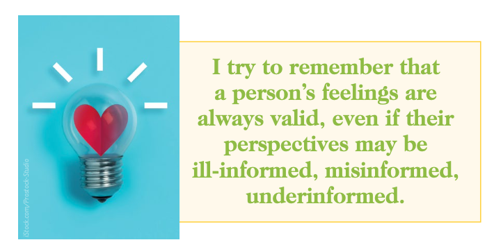 We would all do well to remember that none of us are our social media feeds. Behind our screens, we are whole people, with lives and loves, with broken bones, with fears and pain and actual emotions. I try to remember this, and I often fail. Social media conversations can devolve into a swirling mess of incomplete thoughts, misunderstood implications and sound bite battles that do nothing to achieve anything resembling mutual comprehension, much less grace or mercy. I try to remember that a person’s feelings are always valid, even if their perspectives may be ill-informed, misinformed, underinformed. When I do engage, I try to stick to interrogating beliefs rather than attacking people. When I do this well, I find a certain softening of edges and soon enough, the tender spots of woundedness that all of us carry around begin to emerge. When that happens, it gets less important to be right, and more important to listen for the pain underneath. I am often changed by this process for the better. I’d like to think that they are, too.