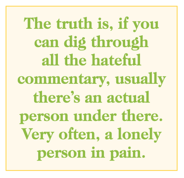 But occasionally, a troll will stop by with a big fat helping of hate. And sometimes, I confess, I take a bite.