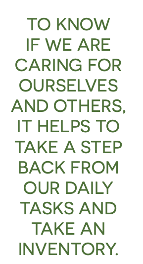 To know if we are caring for ourselves and others, it helps to take a step back from our daily tasks and take an inventory. Elenz offers up three questions we can ask ourselves to reflect: What am I thinking? How am I feeling? What am I doing? These can help us take small steps to care for ourselves, and put us on the path to resilience.