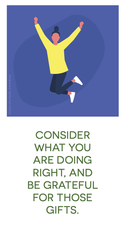A major part of resilience is living in the now – being aware and having a meaningful life in the present, not in some abstract future – especially as our future seems more and more abstract by the week. To create meaning we must clear the way for the unknown. Stillwell states that in order to increase the positive in our lives, we must decrease the negative to make space. Mindfulness meditation goes hand-in-hand with resiliency as we take note of our emotional state. After asking ourselves reflection questions, we sit with those feelings. We don’t sit in them, but with them, acknowledging the pain, and “realizing pain doesn’t mean the end,” Stillwell says. Once we have acknowledged the pain, knowing everyone experiences pain, we can let it go, allowing space for other emotions to dwell within us, too.