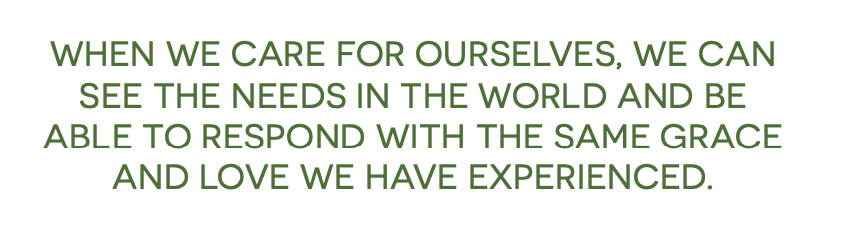 So, the next time your child walks into your Zoom meeting, instead of worrying, laugh and trust there is grace. When your sound system isn’t working or you feel you haven’t even qualified for the Ministry Olympics, be kind to yourself, because you’re doing enough. As I write about the obstacles of working from home, I’m also aware that I am working, and that is a privilege and a gift. So I will acknowledge the distractions – and even give thanks to God for some of them – because I wouldn’t be able to make it through this pandemic without the laughter and joy of the people who are distracting me. When we care for ourselves, we can see the needs in the world and be able to respond with the same grace and love we have experienced.