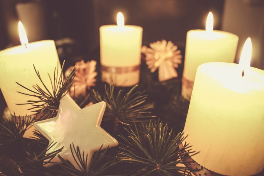 I light the first candle to signal the beginning of a year fresh and new. Light blends with the coziness. The air sings with HOPE.  Wait! says the voice of the divine to my soul.