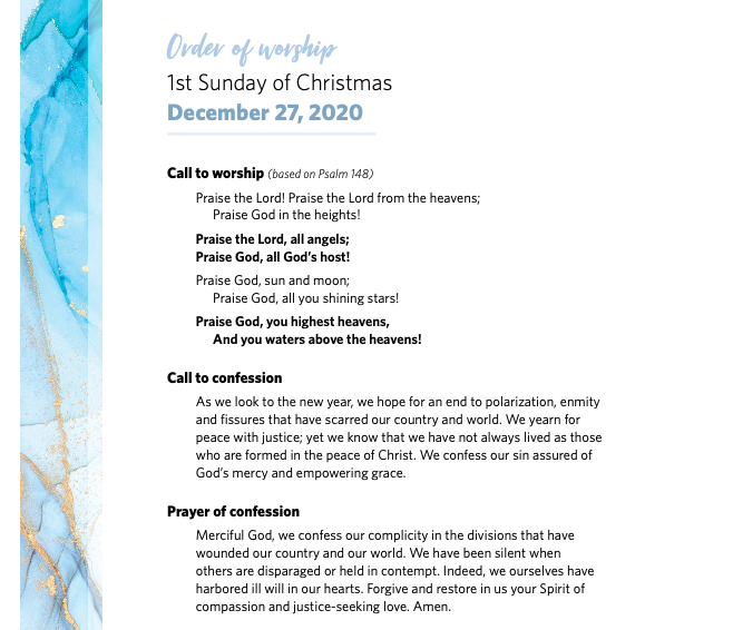 Download the PDF of the full order worship: Liturgy 12.27.20