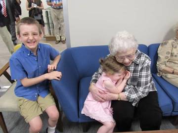 I don’t have any photos from that evening — no selfies or snapshots of her on that couch. That would have been weird. But here are a couple from the grand reopening of the Barbour Library at PTS in September 2018. She spent the afternoon reading and taking pictures with children in the newly built Fred Rogers Family Room. She didn’t want to leave and her assistant had to pull her away, not wanting to wear her out.