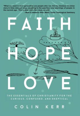 If an Etch A Sketch could depict my faith journey thus far, it would be a beautiful mess of clean lines and swirling loops. This book etched more lines of connection to my evolving work of art. “Faith Hope Love” guides the reader on a journey through the basics of Christian belief with refreshing clarity and in a non-argumentative tone. Colin Kerr admits his personal bias on the matter while offering an informed, grounded theological lens through which to learn about, challenge and wrestle with what it means to be a Christ follower. He tackles, what I might call, the big-ticket items such as the creation narrative, the Triune God and atonement with palatable language for cradle Christians and new converts alike. Sprinkled throughout the discussion of these big-ticket items are concise and honest counterpoints to Christian belief, providing breathing room for doubt and critique of the material presented.
