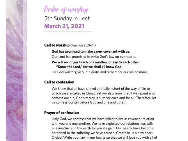 Download the PDF of the full order worship: Liturgy 03-21-21