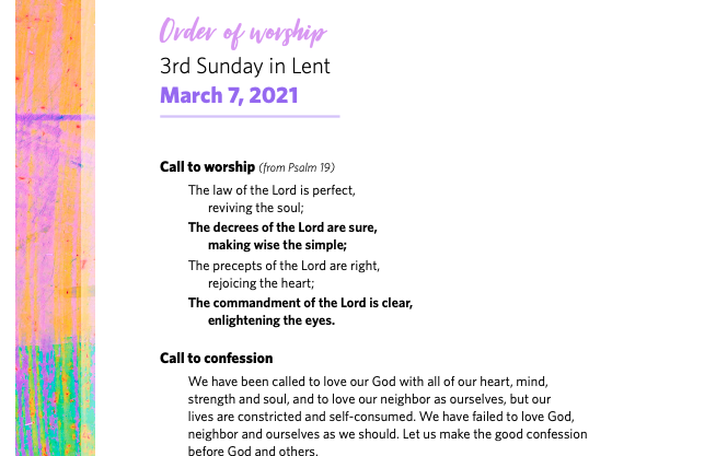 Download the PDF of the full order worship: Liturgy 03-07-21