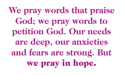 Now, more than ever, the Lord’s Prayer speaks to us. We pray words that praise God; we pray words to petition God. Our needs are deep, our anxieties and fears are strong. But we pray in hope. We pray in hope and in faith that through it all, God is with us — hearing our prayers and sustaining our hope in the kingdom Jesus Christ proclaimed and was in himself. Our hope brings comfort and responsibility. We pray and through pandemic and politics, we live for the glory of God!