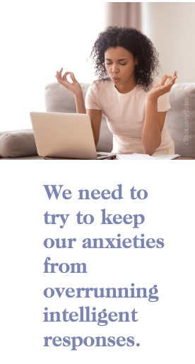 The pandemic has forcefully reminded us of all this. Caught in the grip of a destructive reality we do not entirely control, one pastoral point that needs emphasizing is this: Sometimes there are good reasons to feel anxious. Nevertheless, we need to try to keep our anxieties from overrunning intelligent responses. If we can, we also need to forego destructive tendencies to overconfidence and overreach, as well as to slothful denial and inattention to threatening circumstances.