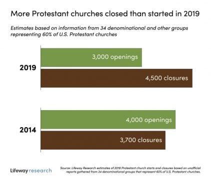 “Even before the pandemic, the pace of opening new congregations was not even providing enough replacements for those that closed their doors,” said Scott McConnell, executive director of Lifeway Research.