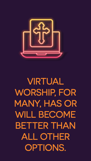 The same dynamic applies to worship, which you probably already realize if your congregation has returned to holding services in person. When the pandemic started, we thought: “I sure wish I could go to church. But since I can’t, at least there is Facebook Live (Zoom, etc.). It’s not the same, but it’s better than nothing.” By now, we find ourselves thinking: “If I go back in person, I’ll have to get dressed. I’ll need to keep my kids engaged and fairly quiet. And I’ll probably run into that person I just can’t stand. Facebook Live is awesome!” Virtual worship, for many, has or will become better than all other options.