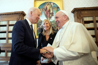 VATICAN CITY (RNS) – Setting a record for longest one-on-one meeting between a pope and a U.S. president, President Joe Biden spoke with Pope Francis for 90 minutes at the Vatican on Friday (Oct. 29), discussing their common interest in climate change and immigration, as well as the distribution of COVID-19 vaccines and health care for the poor.