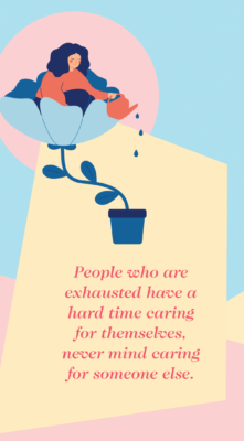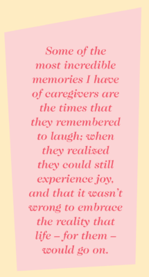 I try to remind caregivers that we all get tired. It’s a known fact. People who are exhausted have a hard time caring for themselves, never mind caring for someone else. I remind them to step away. To take the time and space that they need. After all, a caregiver is only as good to others as they are to themself.