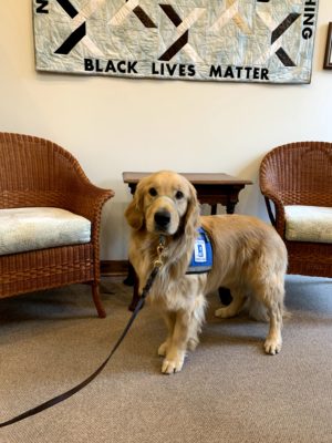 Jane’s current pup is Brinley, a gentle dog who loves everyone. She will likely become a facility dog — maybe in the court system.