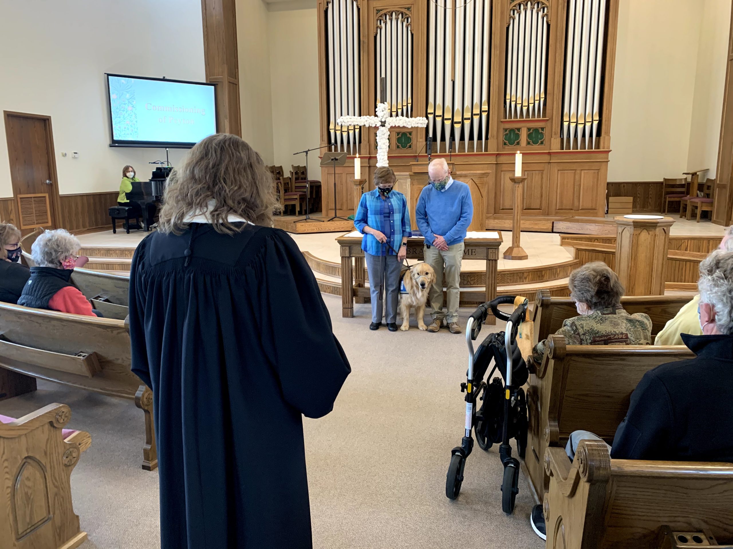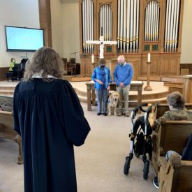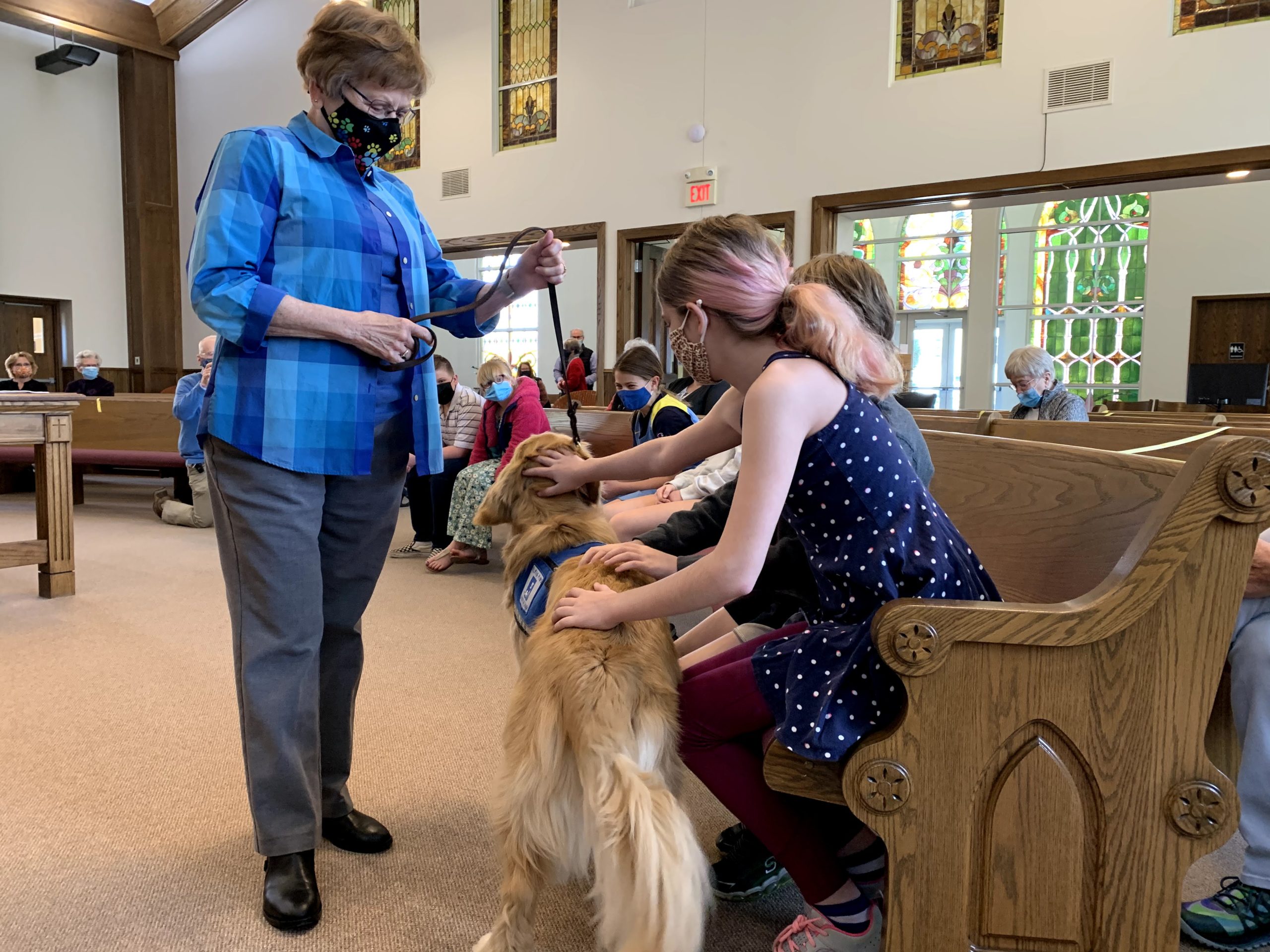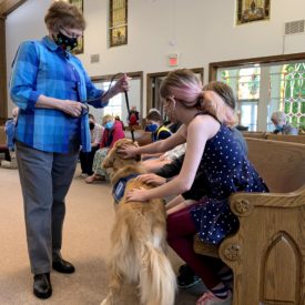 Peyton, the last dog Jane trained, was well-loved by the church. He was placed with an Afghanistan veteran last spring. During worship in April, Peyton was commissioned for his work, which included a laying on of hands by children.