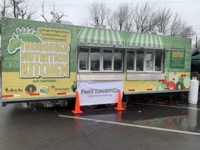 As part of that relief effort, Feed Louisville set up operations in the parking lot of Earlington Elementary School, using a food truck, grills and other supplies donated by Kentucky State University and the Kentucky Department of Agriculture and with food provided by organic farmers, the Louisville grocer ValuMarket, and more.