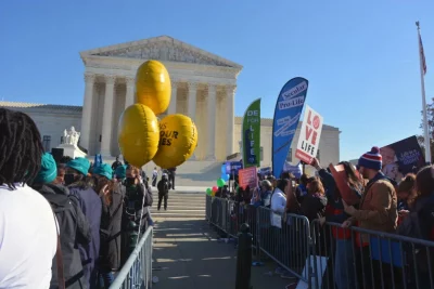 While the justices questioned attorneys in the case, NCJW and Catholics for Choice marched from the church to join thousands of other demonstrators outside the Supreme Court. Crowds huddled for dueling rallies separated by metal barricades, with opponents and supporters of abortion rights leaning on faith to justify their positions.