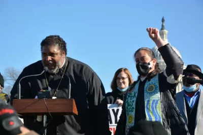 He was followed by speakers from more than 30 states, including many low-income Americans who told stories about living in poverty. Many expressed support for the For the People Act and the John Lewis Rights Advancement Act, voting rights legislation that has stalled in Congress.