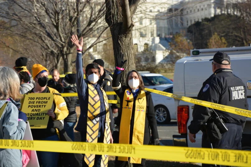 WASHINGTON (RNS) — Hundreds of faith leaders and activists protested outside the U.S. Capitol in support of the Build Back Better bill on Monday (Dec. 13). The demonstration ended with the arrest of the head of the Unitarian Universalist Association and other participants after the group marched into the streets and intentionally blocked traffic.