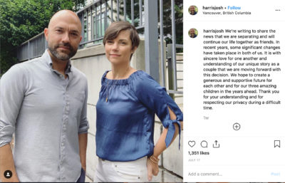 Joshua Harris and Shannon Bonne publicly announced their separation via social media. Photo via Instagram