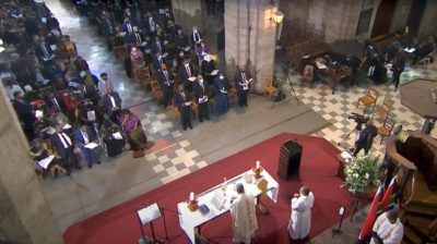 Singing the hymns at the service were Imilonji kantu Choral Society, the Soweto Gospel Choir, St Georges Parktown Choir and a recording from the St George’s Cathedral Choir.