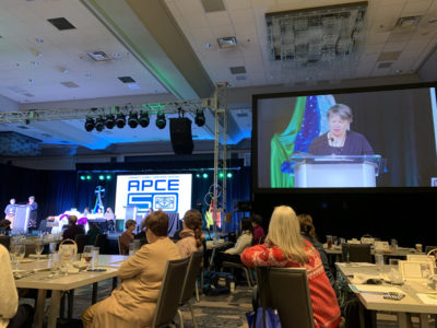 Newly installed APCE President Renda Brinson, who started the meeting as president-elect, echoed Campbell’s vision. She described the strategic planning task force that was appointed to determine how changing the APCE name is “not just a change in name only.” It’s part of a three-year plan focused on bringing greater diversity and equity to the organization, educating the members on these efforts, and re-branding a more inclusive APCE.