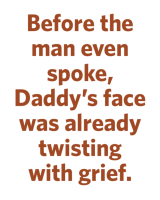 He and Tammy were eating Cheerios at the kitchen table when there was a sudden, sharp knock at the door. Daddy let the police officer inside. But before the man even spoke, Daddy’s face was already twisting with grief.