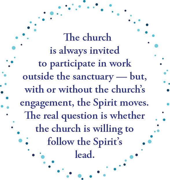 In this instance, his precise and timely challenge was directed to the church universal, with the warning that our beloved material and earthly church needed to get going on finding the Spirit. The Holy Spirit is out in the world working through Black Lives Matter, civil disobedience, prophetic calls to compassion and solidarity with those in the margins. So where are you, church? In this challenging lecture, Ray reminded us that the church is always invited to participate in work outside the sanctuary — but, with or without the church’s engagement, the Spirit moves. The real question is whether the church is willing to follow the Spirit’s lead.