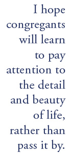 I invite them to close their eyes and bring their attention to their bodies in the chair. I say that paying attention to our bodies is a way to ground ourselves in the present moment — where God is. Then I ask them to turn their attention to their breathing. Like a mindfulness coach, I tell them to give the in-and-out of their breath their full attention as a way to let go of distracting thoughts. “Those distracting thoughts,” I say, “pull us out of the present, where God is.” While they are breathing silently, I might remind them that God is the One who breathes life into us, just as Scripture says God breathed life into the first human. Our own breathing can become a sacrament of God’s presence. I might tell them that God is nearer to us than our own breath, or I might remind them of St. Augustine’s famous claim that God is closer to us than we are