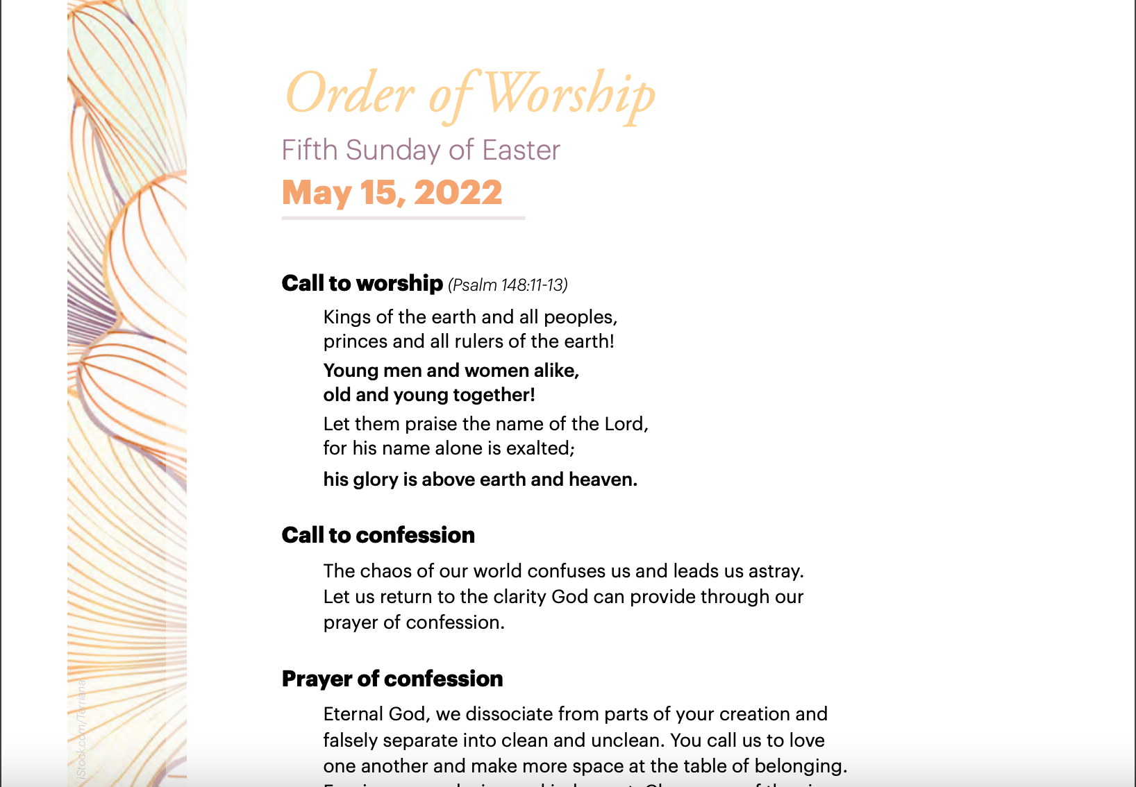 Download the PDF of the full order worship: Liturgy_05.15.22