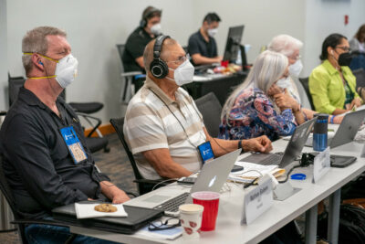 Janette Plunkett, an overture advocate for ENV-09 and a certified energy manager, said the approach to the overture was strategic. She sat in on MRTI meetings, and the presbytery waited to submit the overture until MRTI had approved its recommendations in January. That gave the drafters less time to gather concurrences — but more time, she said, to consider the language of the range of environmental overtures coming to this assembly, and to search for common themes.