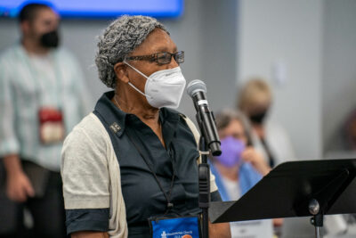 Vision 2020 Team Co-moderator Sabrina Slater of Geneva Presbytery emphasized that the document is a guiding statement, not a vision statement. “We present this to the church as a framework for engaging the church in visioning at all levels,” she said, adding that the denomination’s Matthew 25 Initiative “embodies the calls in the Guiding Statement to be prayerful, courageous, united, serving and alive. We hope the Guiding Statement will align us with Jesus Christ.”