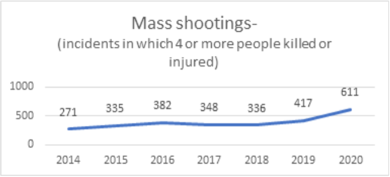 The number of mass shootings: