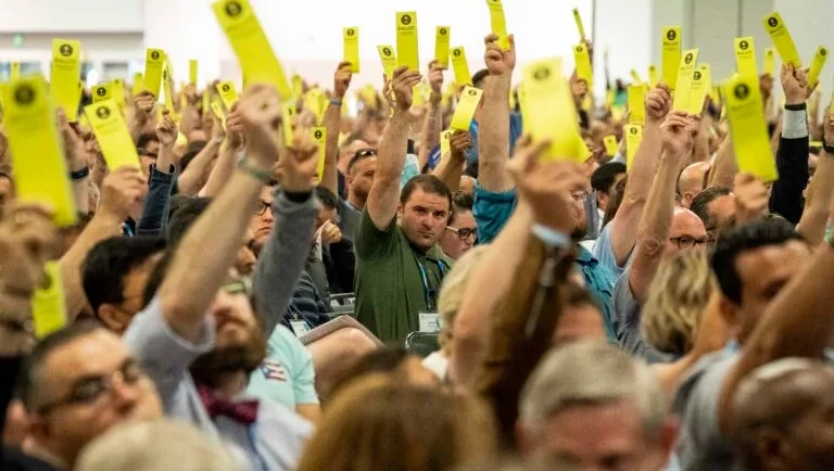 ANAHEIM, Calif. (RNS) — With a sea of raised yellow ballots, messengers to the 2022 Southern Baptist Convention annual meeting overwhelmingly approved a set of recommendations to address sexual abuse in the nation’s largest Protestant denomination.