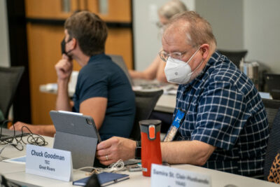 As they took up the issue this morning, Committee Moderator Jennifer Jennings called on Parliamentarian Carson Rhyne to describe a possible way to proceed. Rhyne suggested the committee could have a more flexible discussion as they decided on the wording by working as a quasi-committee of the whole — a way, using Robert’s Rules of Order, to create more space for informal conversation and debate.