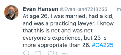 Her statement got some responses on Twitter, including this from commissioner Evan Hansen, a minister from the Presbytery of Geneva: