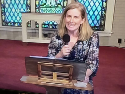 Louisville, Kentucky – Wednesday morning’s preacher was Kate Murphy, pastor of the Grove Church in Charlotte, North Carolina, who said we are like Saul on the road to Damascus, “claiming to do the will of God but resistant to what God demands.” As Presbyterians, she continued, “We can’t just claim our achievements and contributions, but also the harm and destruction new have wrought. We are called to lay it all down and leave it behind” and through repentance and God’s grace “to be reborn by the power of the Holy Spirit to become something new altogether … transformed from who we were to who we were called to be.”